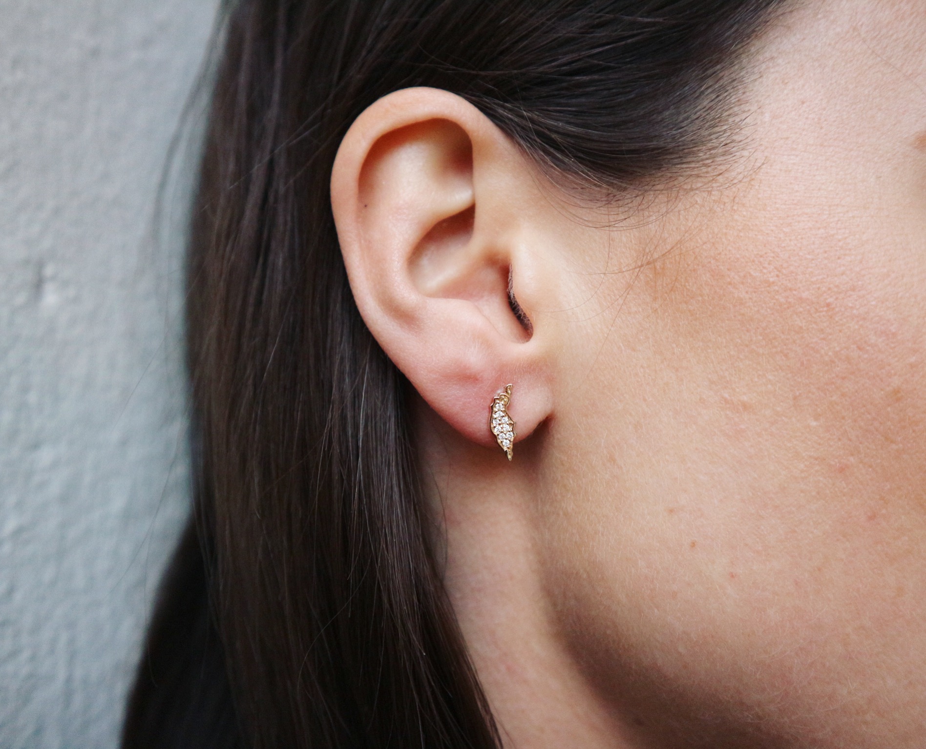 1 par örhängen på stift i form av Gotland i 18k återvunnet vitguld med diamanter.