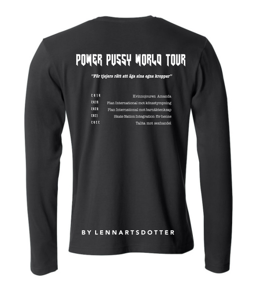 Som bärare av ett Power Pussy produkt är du med och stöttar flickors rätt att äga sina egna kroppar. Power Pussy projektet är startat av Sanna Lennartsdotter för att upplysa om och samla in pengar till olika kvinnoorganisationer, och i år stöttar vi organisationen Talita.