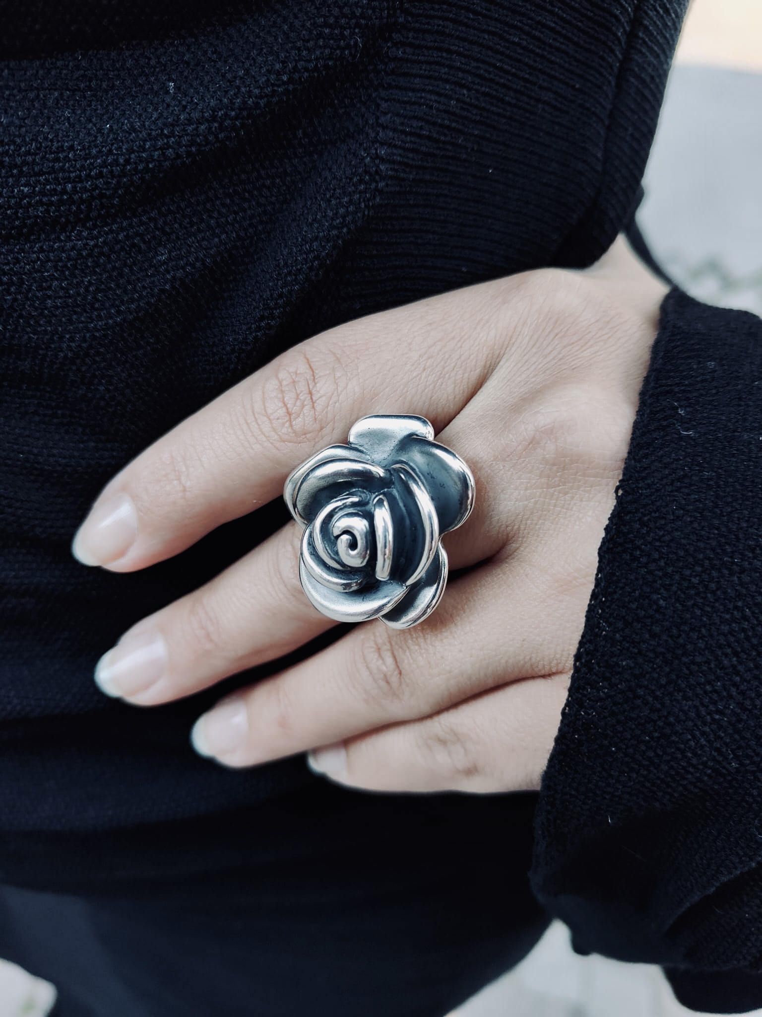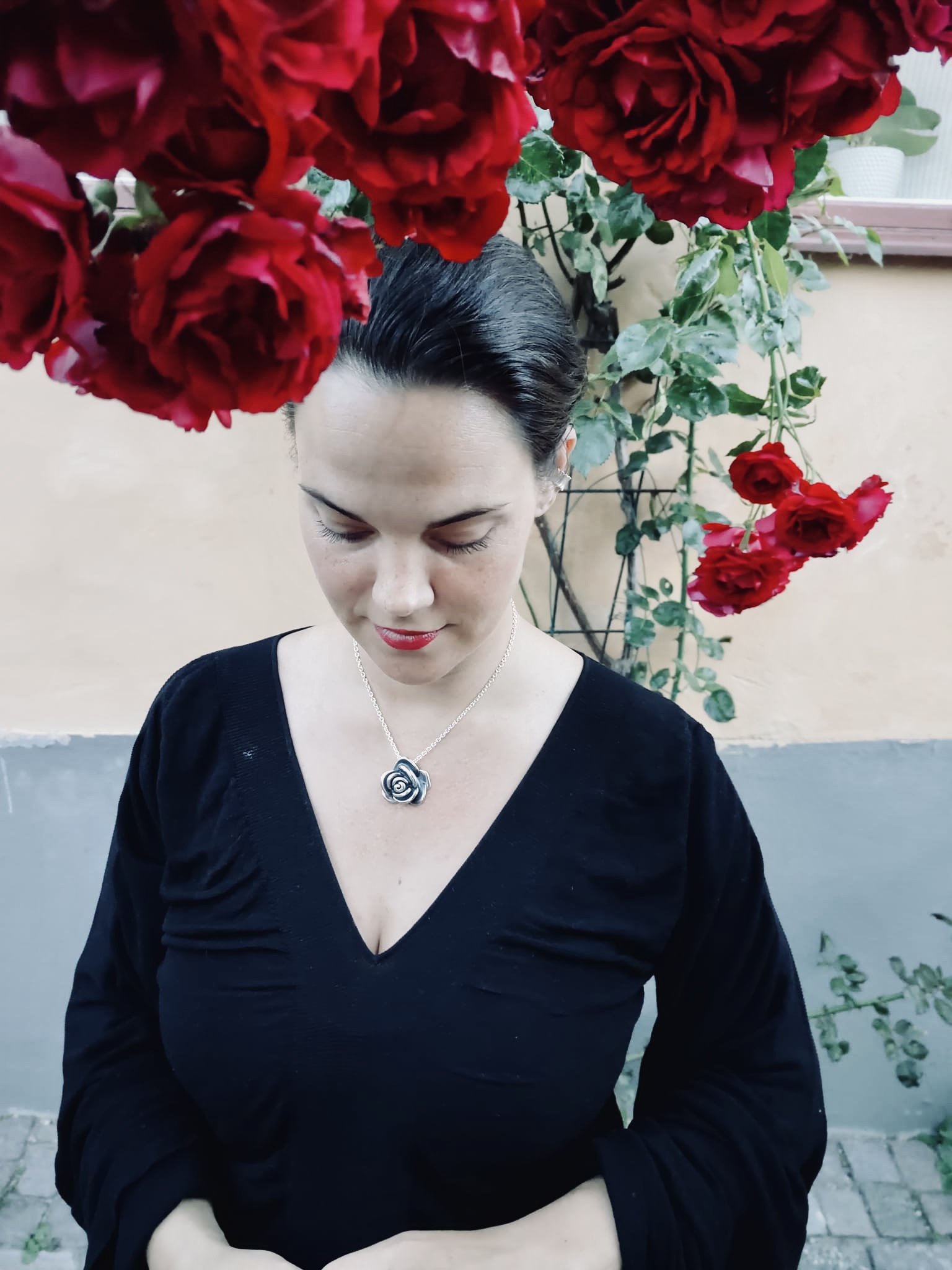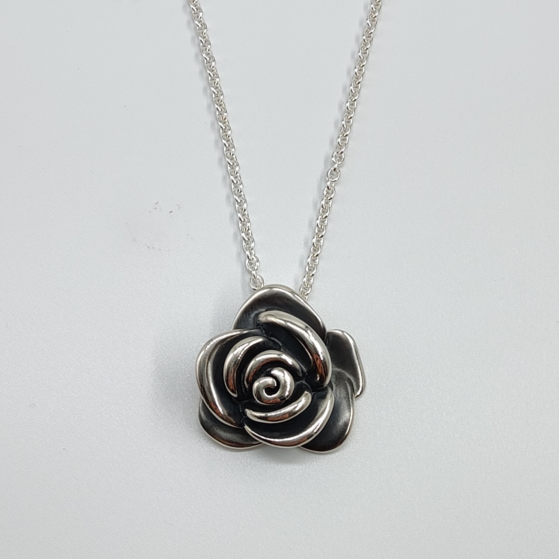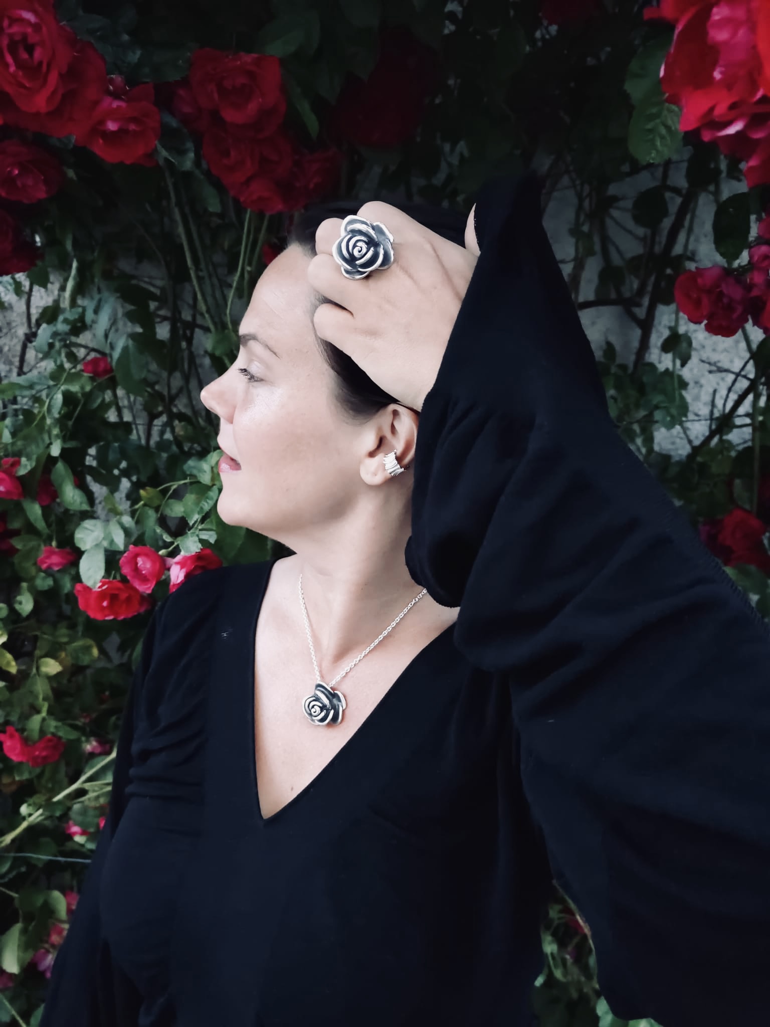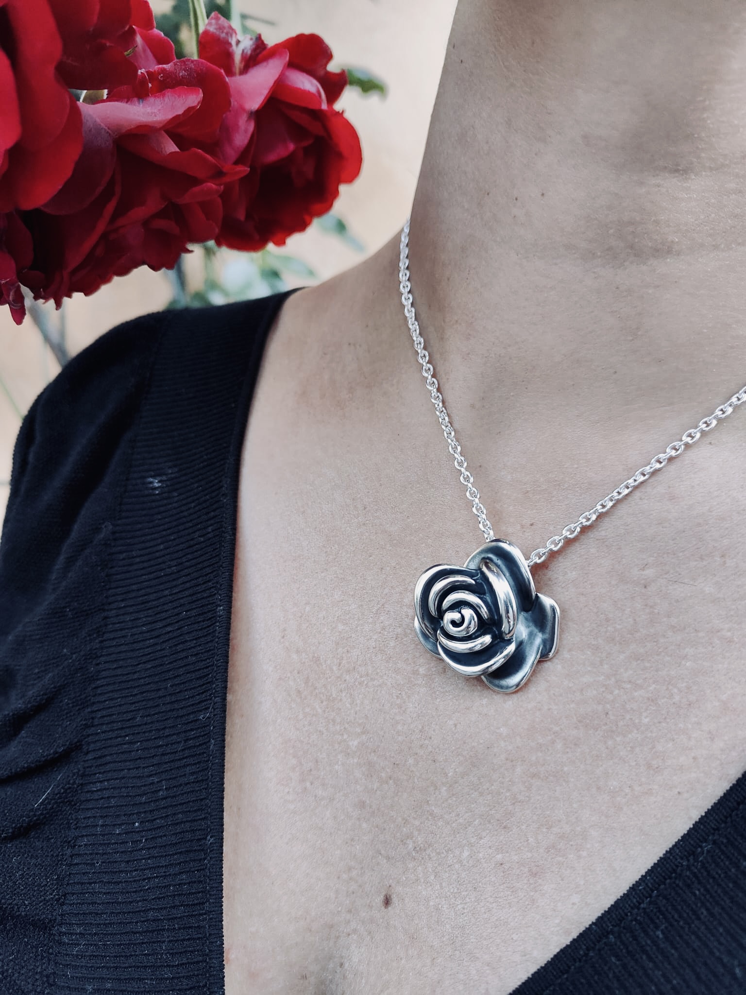 En ros för rosornas stad Visby, i återvunnet oxiderat sterling silver.
