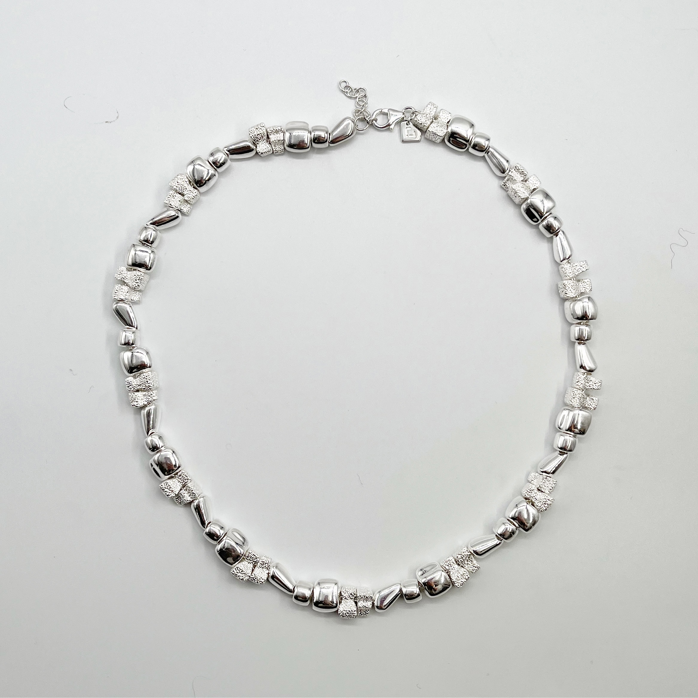 Ett halsband med silverkulor inspirerat av Stenkusten, Ar på norra Gotland.